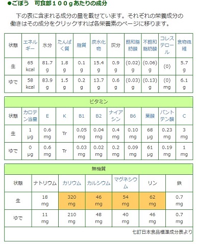 ゴボウの栄養成分については