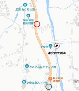(地図で)青丸の下近くに滝があるから、それが見たければ行ってみても良いかな。