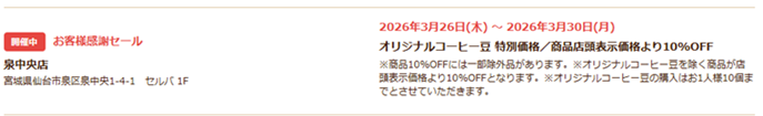 セルバ店だと、毎年3月下旬にセールやってくれるんだけどさ。