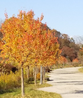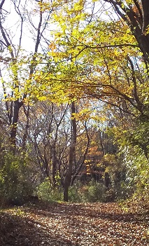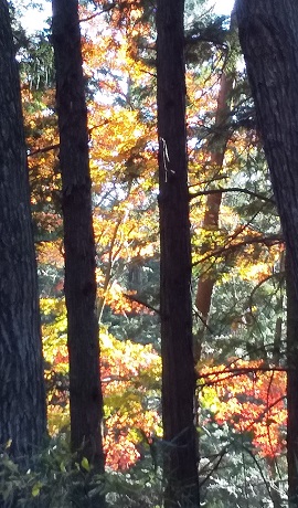 真夏はきっと鬱蒼としていたであろう道も、今は柔らかな木漏れ日が射し込んでますね。