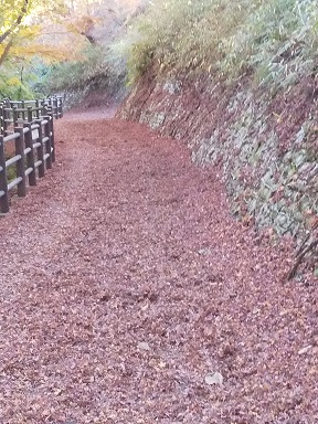 モミジの落ち葉がこんもりと積もり、なんかね。すんごくやわいんですよ。優しい。足に凄く優しい。。