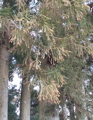 帰りに歩いた林には、やる気満々の杉がたくさん!