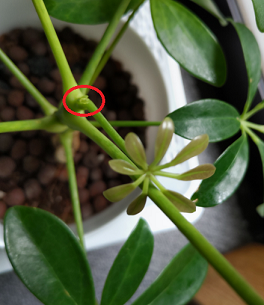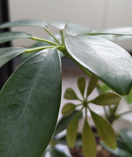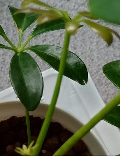 100円ショップで買ったちっちゃなカポックが、今では葉っぱが10枚も!命って凄いよね。
