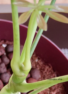 暖かければこの膨らみからまた新葉が出るだろうけど、さすがに今年はここまでかな。実は7月の投稿以降、この前にも3枚、葉が生長したのさ。