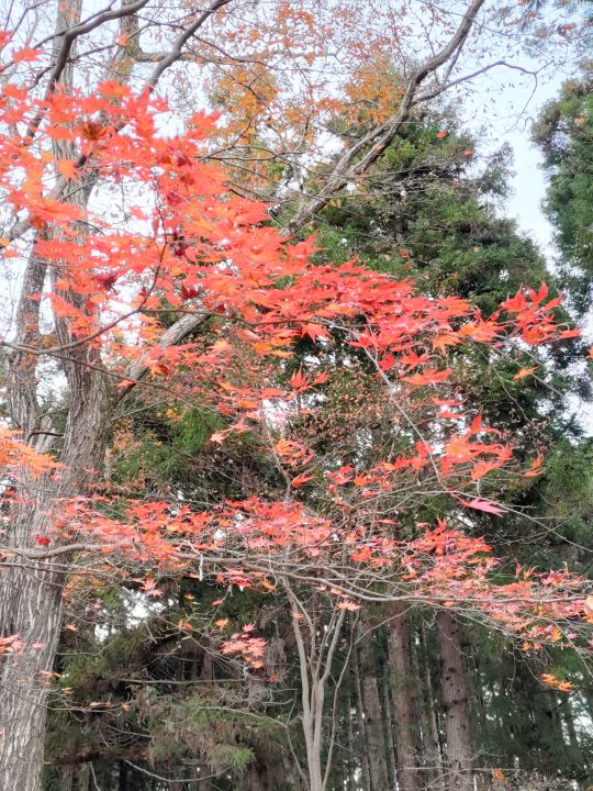 すっかりお休みモードの森だけど、場所によっては、まだこの通り紅葉が残ってたね。