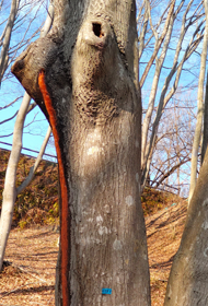 虫にあけられたり、剪定などで切られたりすると、その場所から樹液が大量に出るんだそうよ。