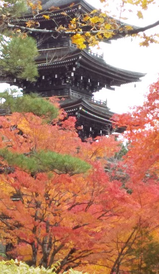 紅葉、見事でしたよ♪ 五重塔と一緒にパチリ。