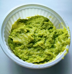 普通サイズの白玉が6個。画像の通り、たっぷりとずんだ餡がのって税別166円。