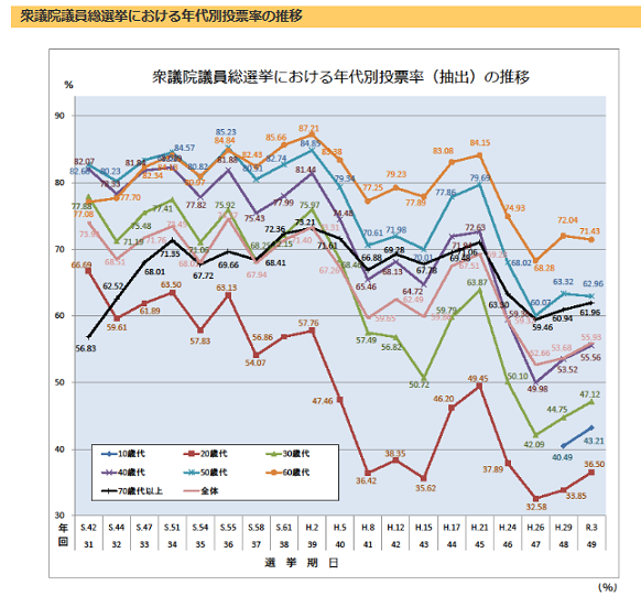 現役世代の約半分は投票していない、、か(^^; 要するに、この層次第で未来は変わるってことじゃないの?