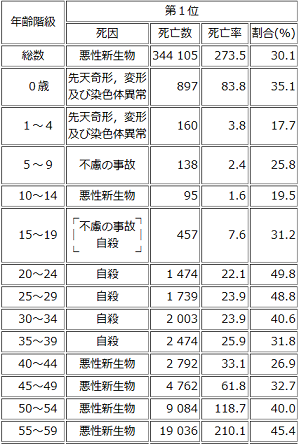 20歳~39歳までの死因第一位が「自殺」だよ。