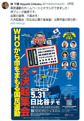 そうなのよ。林千勝さんの【X】に5/31予定のデモについて、新しいポスターがポストされてたよ。