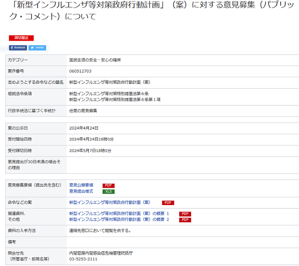 タイトルは【パブリックコメント締め切り迫る!新たな感染症に備える「政府行動計画」とは?】だぜ。