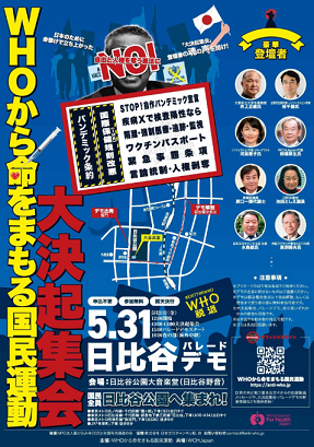 さて。またまた紹介させて頂きます。5/31の【WHOから命をまもる国民運動 大決起集会・パレードデモ】。
