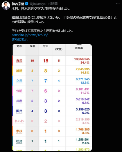 何より自民党がそれを敏感に感じ取ってるから妨害すんだよ。参政党の存在自体を隠し通す気なんだろ。