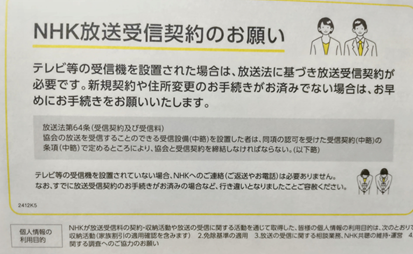 『テレビ等の受信機を設置されていない場合、NHKへのご連絡は必要ありません。』とあるから無視するか。。