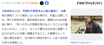 これはあくまでも「付加価値税」の減税についてだけどさ。たとえばアメリカでは、、