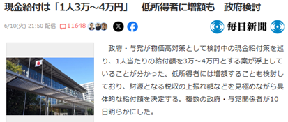 物価高騰対策支援給付金(10万円)も支給してんだよな。非課税世帯には。