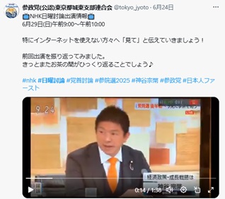 【参政党(公認)東京都城東支部連合会】のポストで紹介されてる。