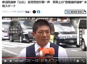 「キャッチコピーは『日本人ファースト』です。日本の経済は弱すぎる、弱くなりすぎた。それをやってきた自公政権には、もう退場してもらわないといけないんじゃないですか」