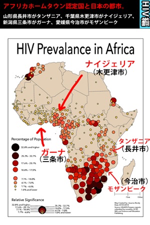 「アフリカホームタウン認定国と日本の都市」を図で詳しく見ると、、、恐ろしいことに。