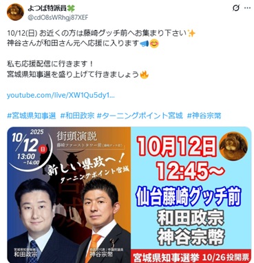 今後は和田政宗氏の応援旗借りて、辻立ちすることにしたよ。