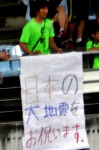 東日本大震災後のサッカー試合ではこんなことまでやりおった。