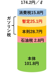 「本体」+「石油税」+「ガソリン税」=158.4円だね。